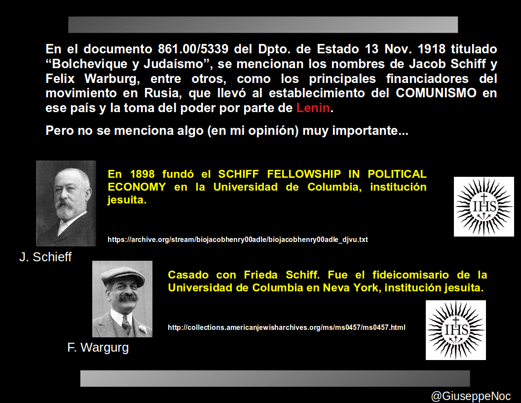 Anexo(71) #Rusia Jacob Schiff y Felix Warburg, principales financiadores del movimiento #Bolchevique en Rusia, que llevó al establecimiento del COMUNISMO en ese país y la toma del poder por parte de Lenin. Pero no se menciona algo (en mi opiníón) importante.