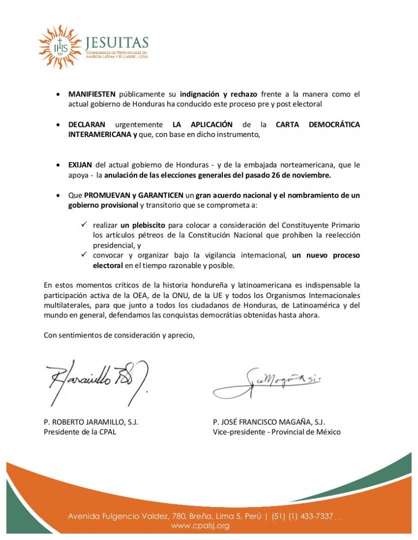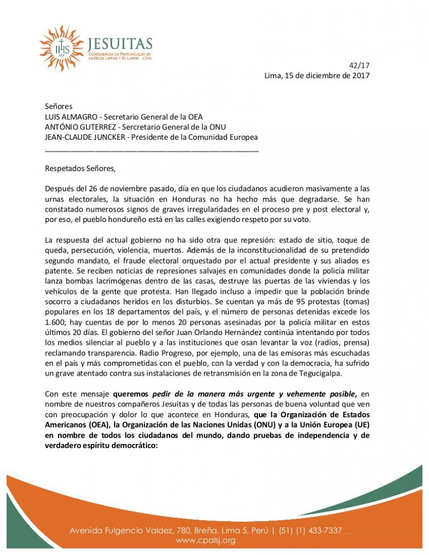 Anexo(46) ¿Alguna duda del PODER POLÍTICO de los #jesuitas ? Envían carta a la #OEA el 15 de diciembre sobre las #ELECCIONES de #Honduras ,y a los 2 días la @OEA_oficial cumple la ORDEN de los jefes y se pronuncia…¿cómo les parece?