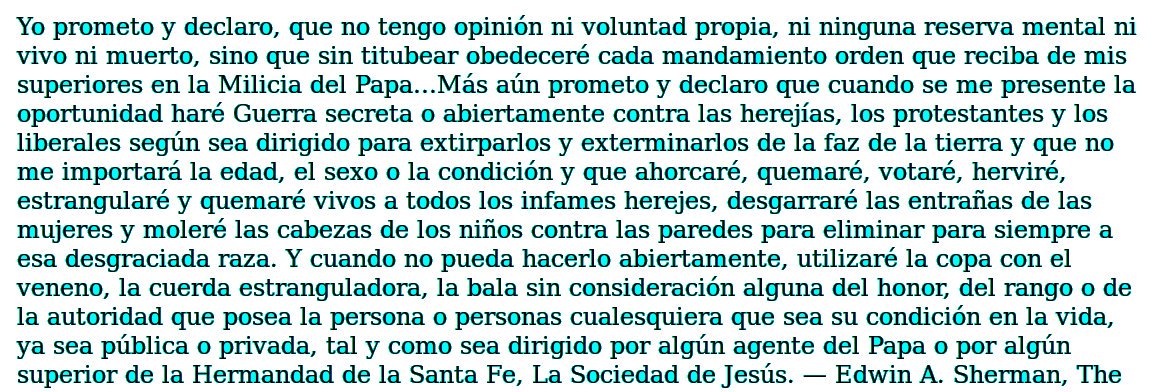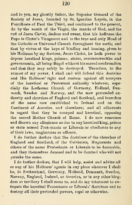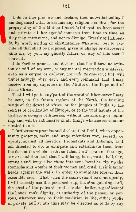 Anexo(68) Juramento de los #jesuitas pág. 119 a 122 del libro «The Engineer Corps Of Hell» – «El Cuerpo de Ingenieros del Infierno» (inglés) Recomiendo leer atentamente la página subrayada en rojo «prometo y declaro que cuando se me presente la oportunidad haré Guerra secreta…»