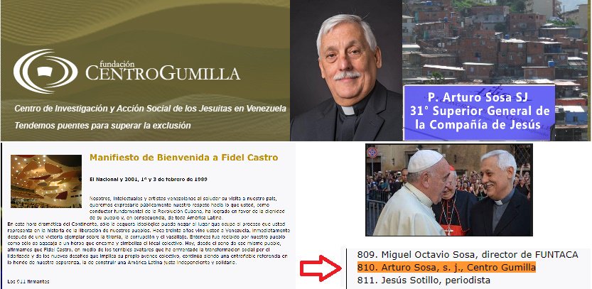 Anexo (49) Arturo Sosa, venezolano, Padre General o Papa Negro Firmante #810 del manifiesto de bienvenida a FIDEL CASTRO en toma de posesión del presidente Pérez 1989 en Caracas. 25 días antes del CARACAZO, insurrección comunista que los medios divulgaron como «revuelta popular».