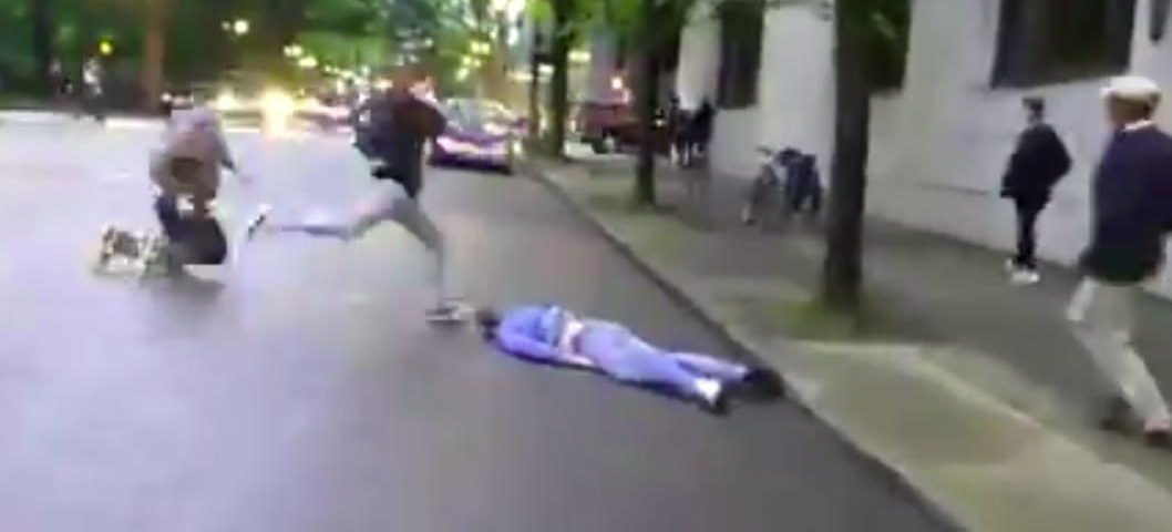 A man in a wheelchair was beaten in downtown Portland during the rioting. cc: @tedwheeler, @OregonGovBrown, @PortlandPolice. #antifa #GeorgeFloyd #BlackLivesMatter